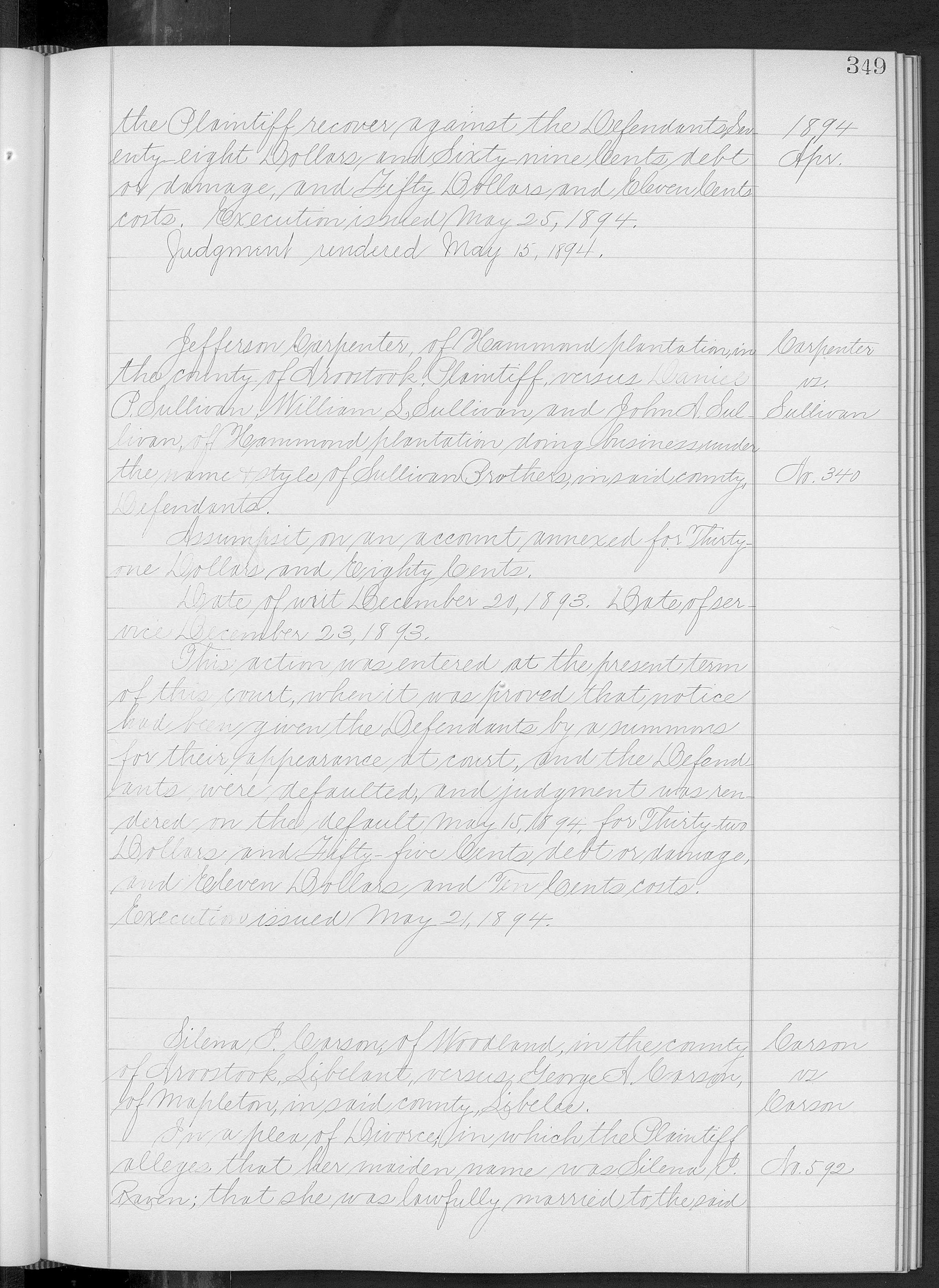 of divorce issued May 23, 1894.